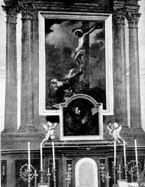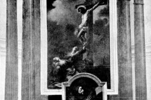hlavní oltář s obrazy Kristus na kříži (Petr Brandl) a sv. František (Josef Bergler)