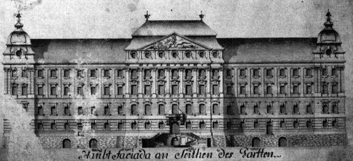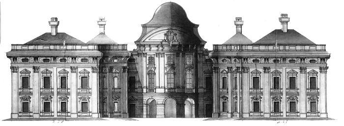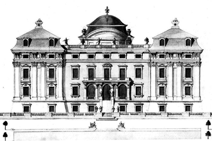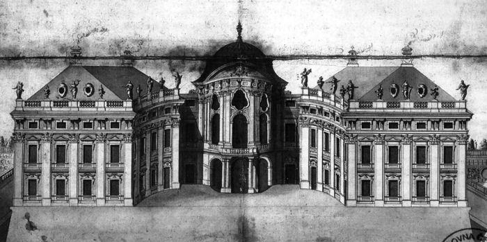 zahradní průčelí na anonymní kresbě podle Domenica Martinelliho