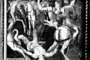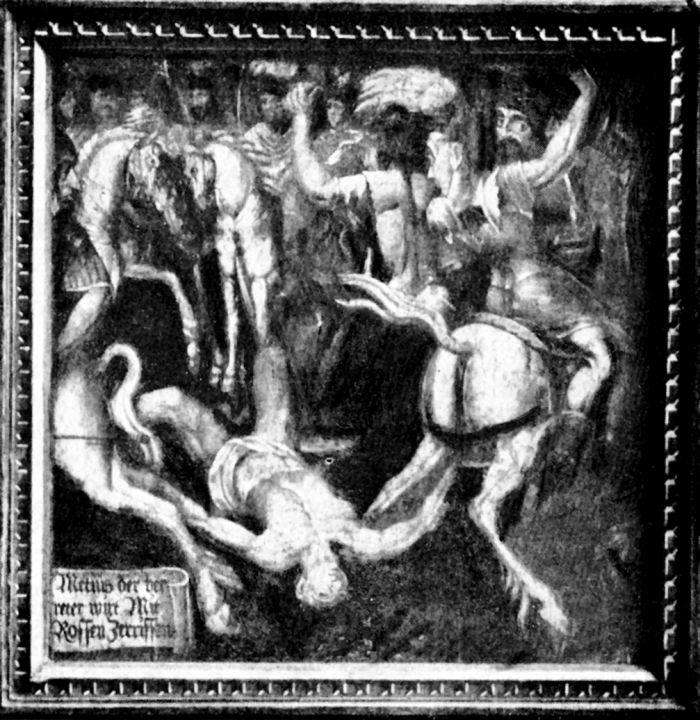 Mettius Suffetius trhán koňmi - detail z výzdoby kazetového stropu, 1578-81