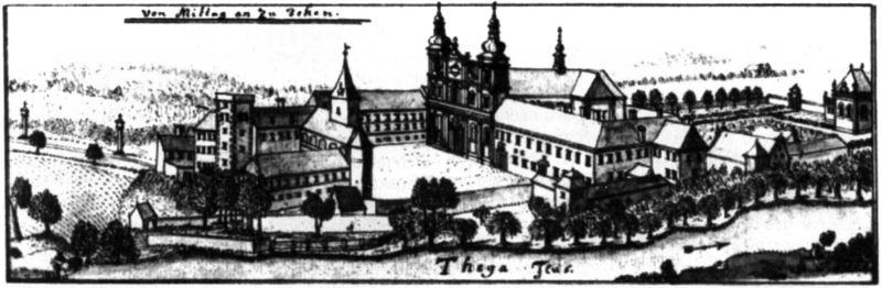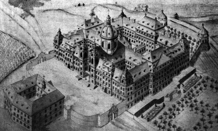 klášter kolem r. 1730 na rytině F.B. Wernera