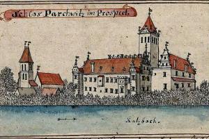 zámek od jihozápadu na kresbě F. B. Wernera z poloviny 18. století