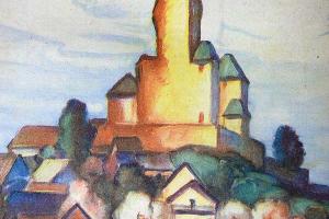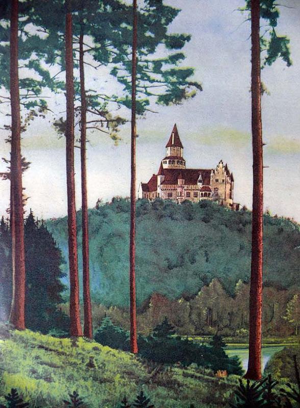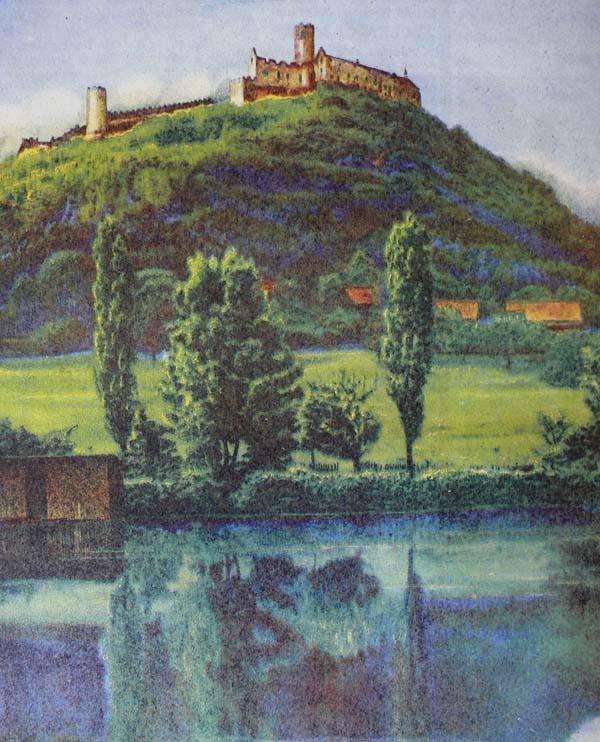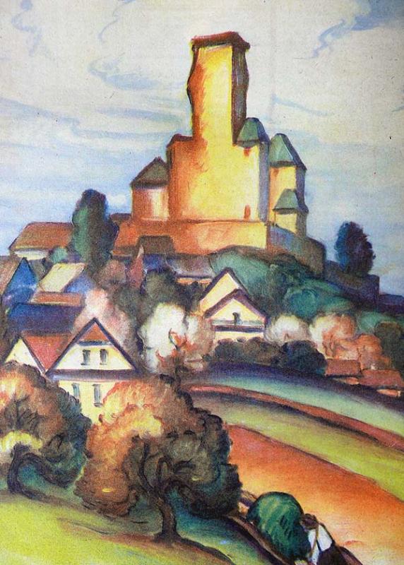 Hrad na kresbě Karla Tichého (otištěno v Pražském ilustrovaném zpravodaji, 1935, č. 25)
