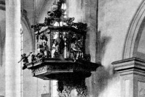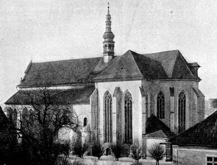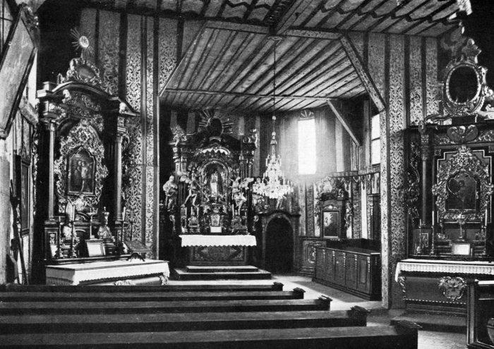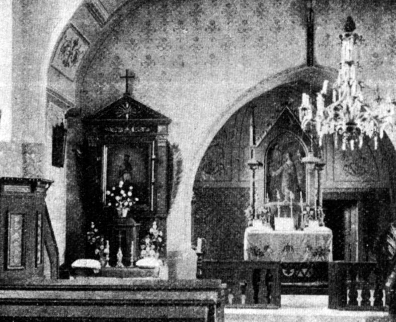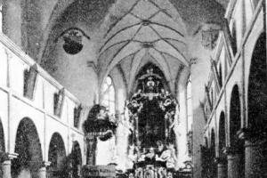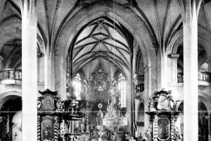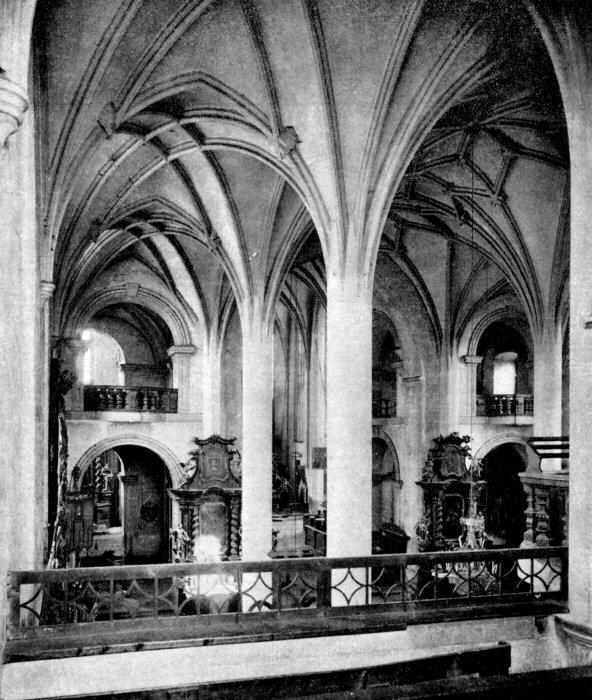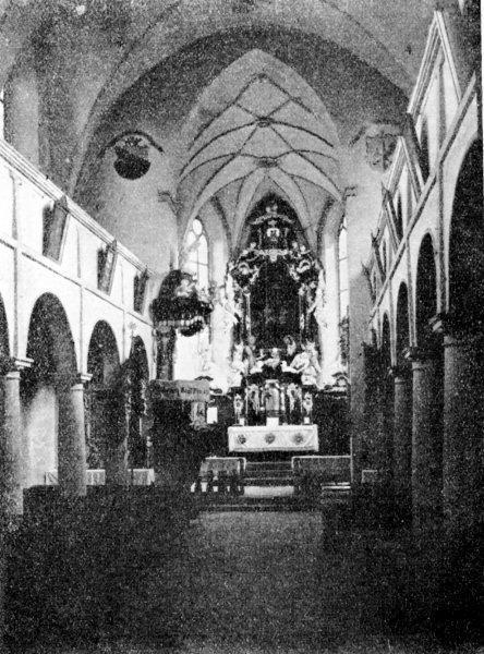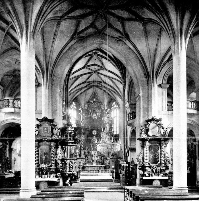 pohled z kruchty do trojlodí od jihovýchodu před novogotickou přestavbou