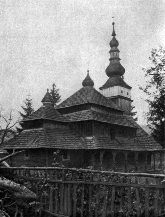 kostel v původním umístění, krátce před rozebráním a přenesením do Čech