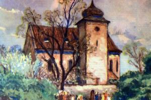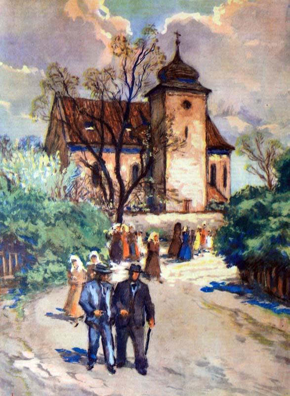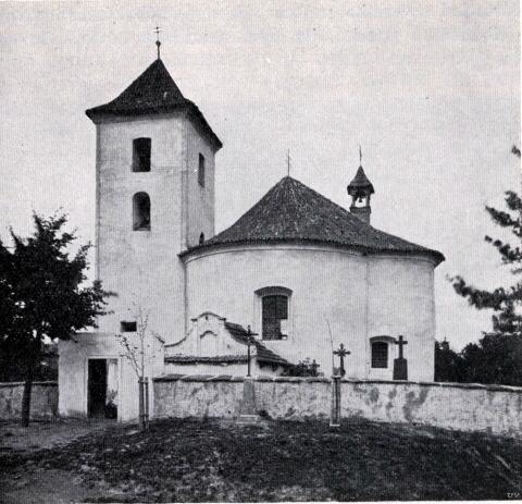 Kostel na kresbě Rudolfa Adámka (otištěno v Pražském ilustrovaném zpravodaji, č 1935, č. 30)