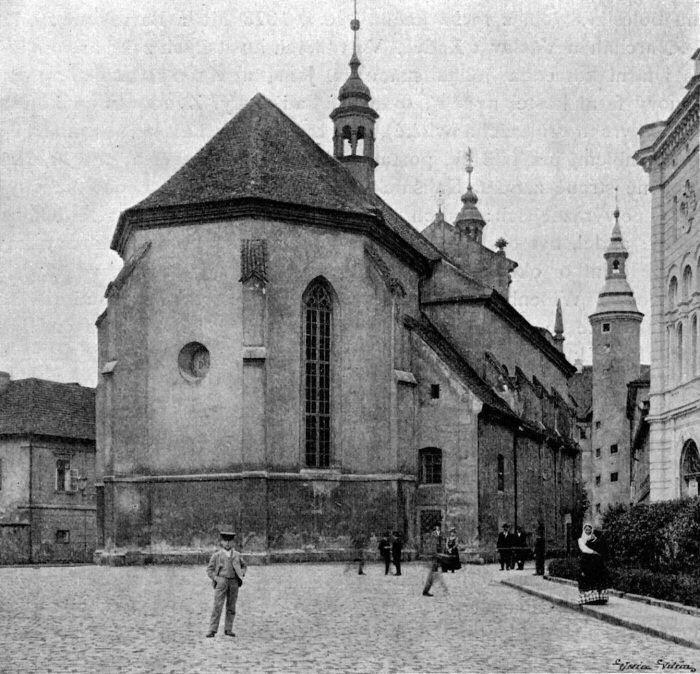 kostel od jihu kolem roku 1600 - výřez z rytiny Jana Willenberga