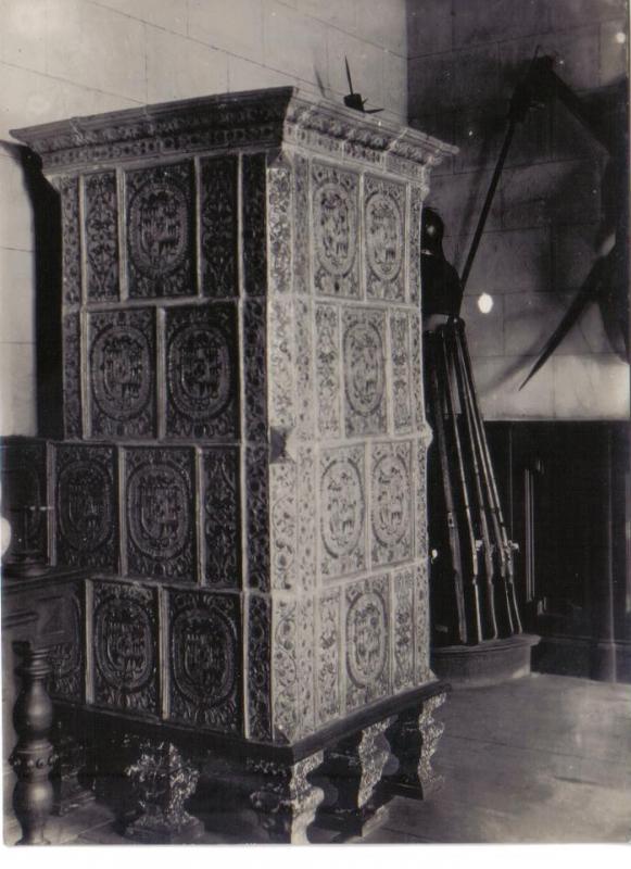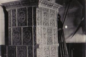 Chropyně - Historická fotografie z počátku 20.století. Kachlová kamna v Ječmínkově sálu (soukr.sbírka IvoR)