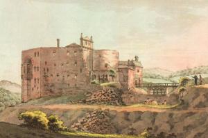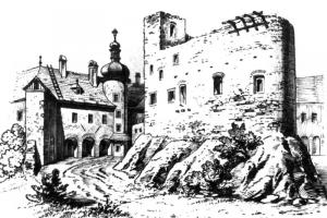 severovýchodní strana hradní ruiny, kresba V. Miškovského, 1877