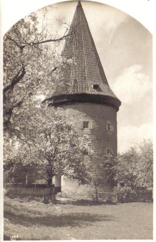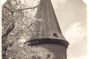 Č.Krumlov - Okrouhlá bašta opevnění Latránu na fotografii z počátku 20.století (soukr.sbírka IvoR)