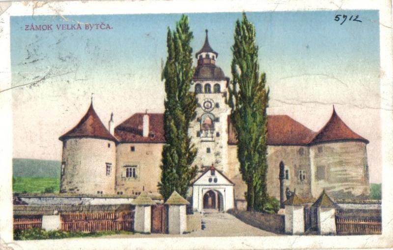 Bytča - zámek na historické pohlednici datované r.1928 (soukr.sbírka IvoR)
