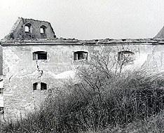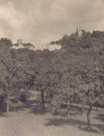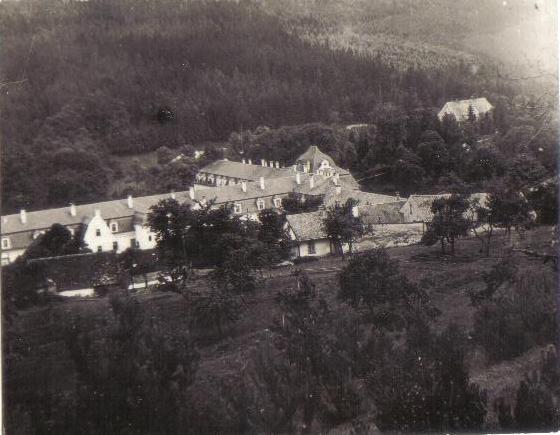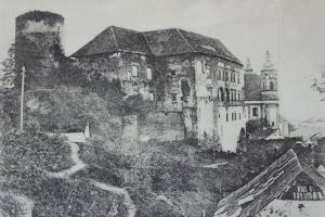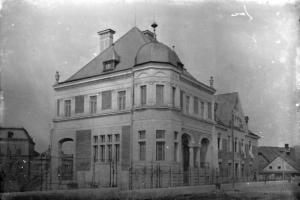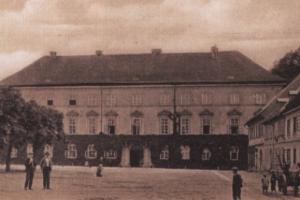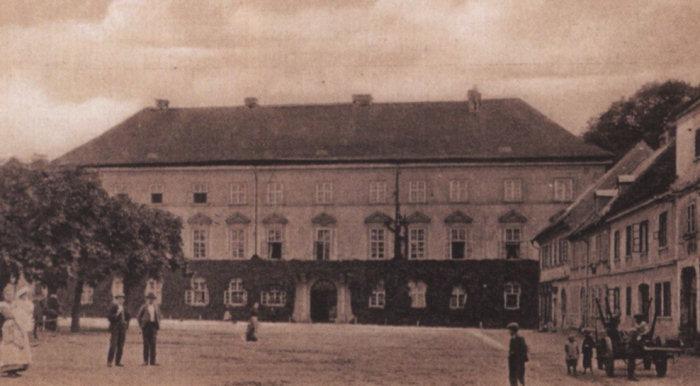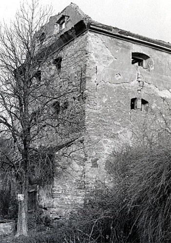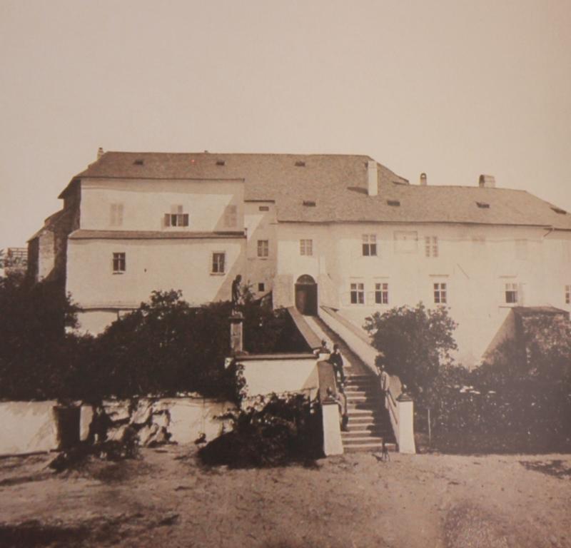 při srovnání s dnešním snímkem je vidět, že původní barevné členění fasád bylo poněkud odlišné