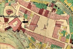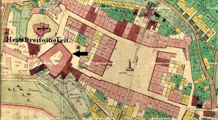 Vyznačení bývalého hradu (zámku) v Hostinném na mapě Stabilního katastru z roku 1841