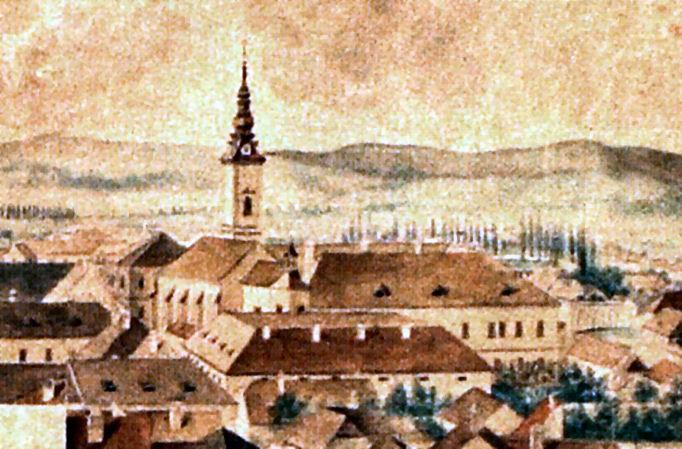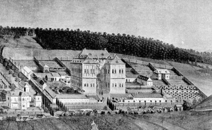 klášter na výřezu z veduty neznámého autora z 20. let 18. století