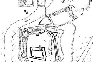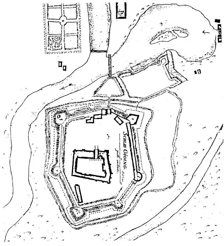 Komplex hodonínského hradu a jeho valového bastionového opevnění na počátku 18. století