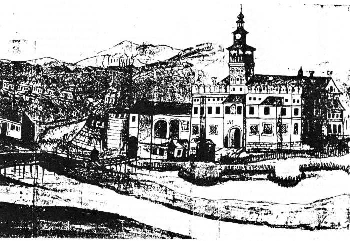 klášter na výřezu z veduty neznámého autora z roku 1670