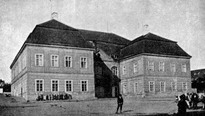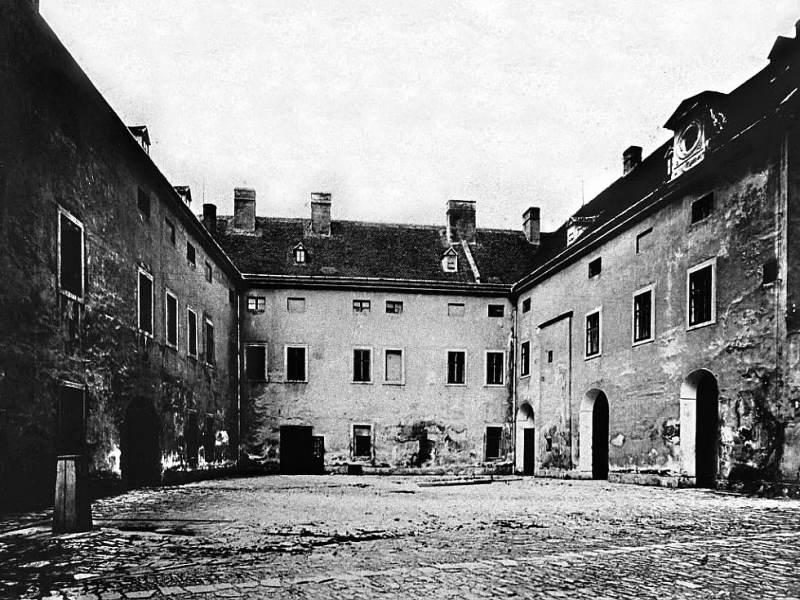 západní fronta nádvoří hradu před demolicí na počátku 20. století