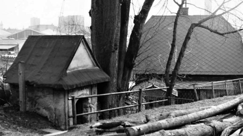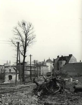 celkový pohled na kapli v době zahájení asanace starého Místku, před rokem 1967