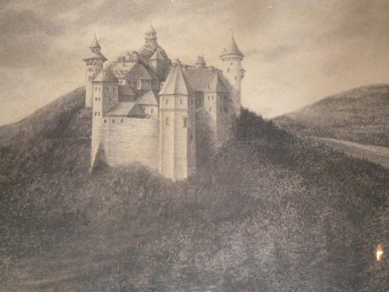 hrad, upravený v té době již na papírnu, je vyznačen šipkou