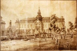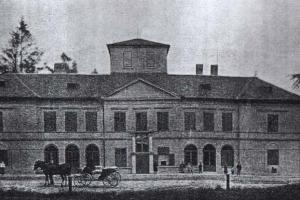 Budova kláštera s kostelem (původně zámek) v roce 1913.