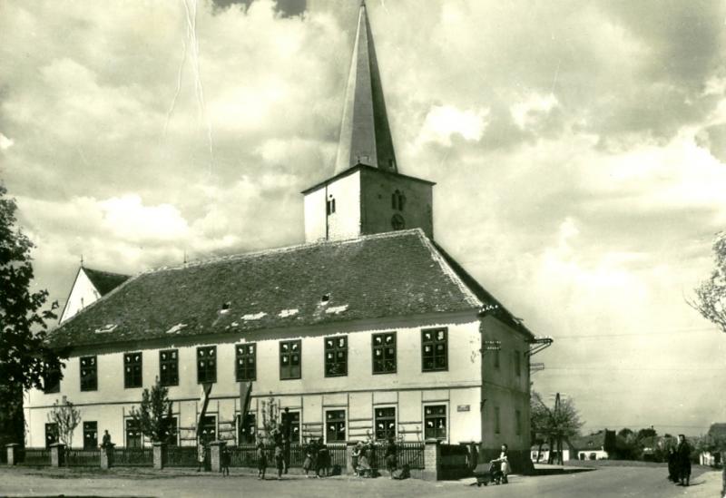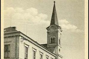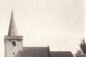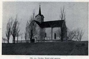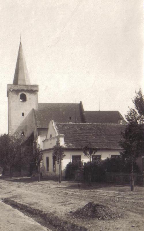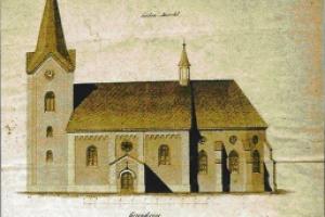 Výrazně menší původní stavba na jejímž místě je dnes novorománský kostel.