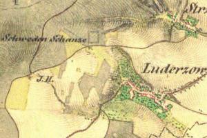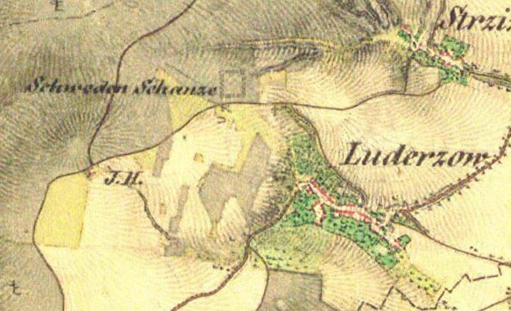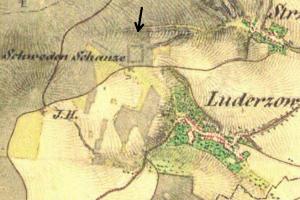 Lokalita Keltská svatyně na mapě z 19. stol. označena jako Švédská šance.