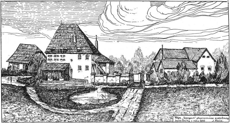 Šargounský mlýn kolem r.1880. Pohled od Rozvadovic.