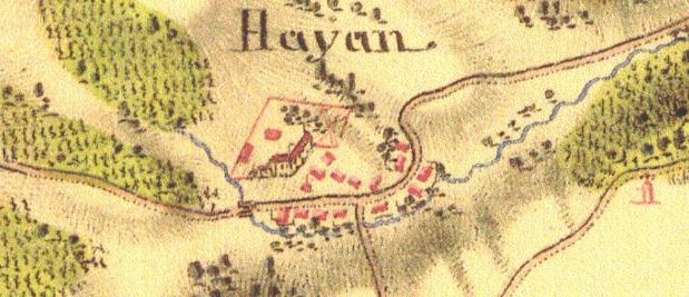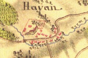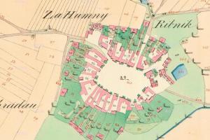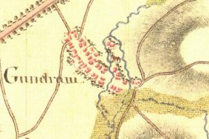 Areál dvora se zámkem na I. vojenském (josefském) mapování - Morava, mapový list č.104 z l. 1764-1783.