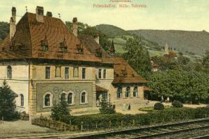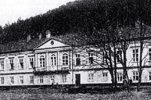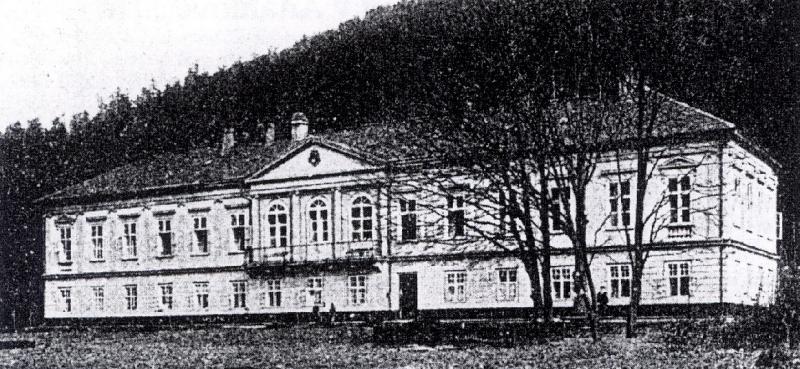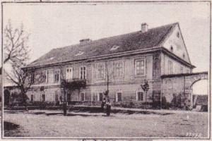 arcibiskupský zámeček spolu se správními budovami železáren a kaplí sv. Barbory na samotném počátku 20. století