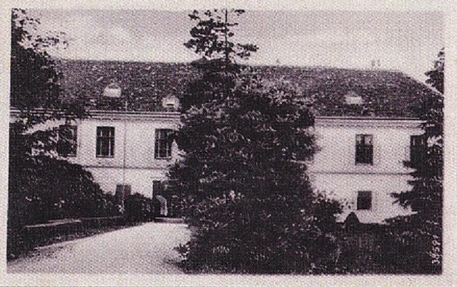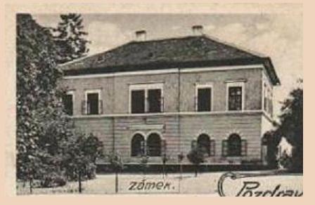 Zámek na staré pohlednici (výřez) kolem r. 1923.