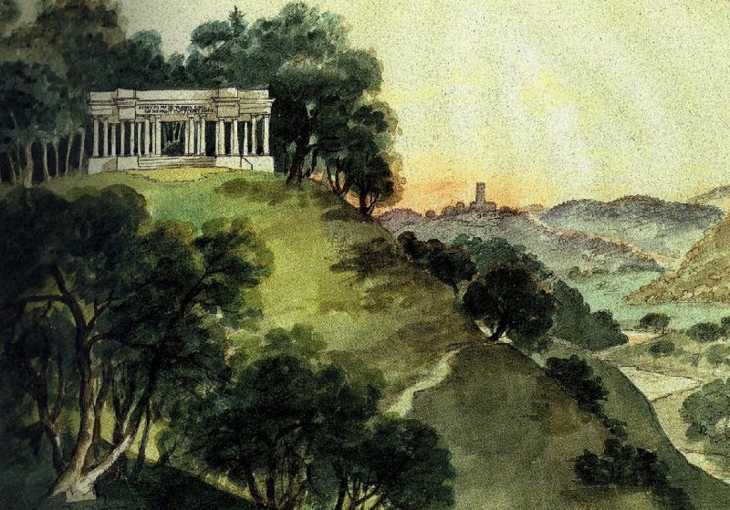 Místo s kaplí kolem r. 1830, před výstavbou kostela a fary.
