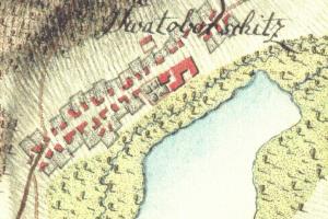 Zámek na I. vojenském (josefském) mapování - Morava, mapový list č.90 z l. 1764-1783.