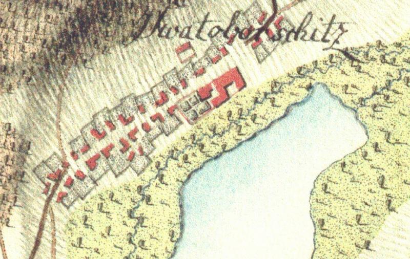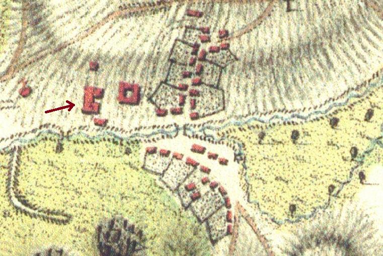 Zámek na I. vojenském (josefském) mapování - Morava, mapový list č.105 z l. 1764-1783.