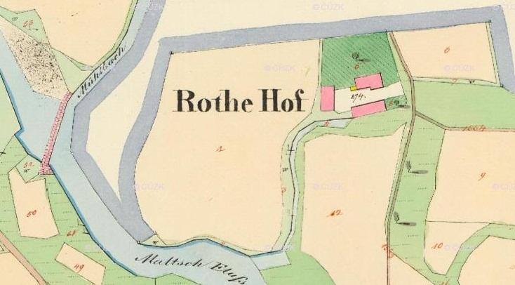 Rothe hof ( Červený dvůr) na císařském povinném otisku map stabilního katastru Čech (1824-1843)