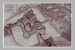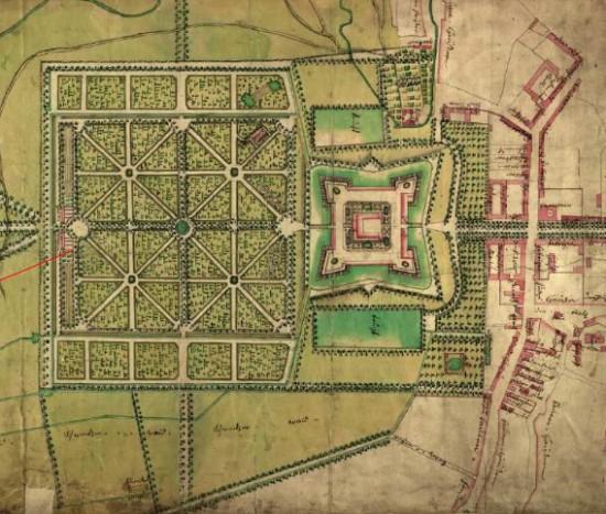 Dobový půdorys zámku s francouskou barokní zahradou.