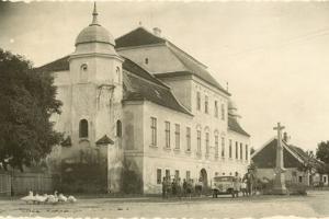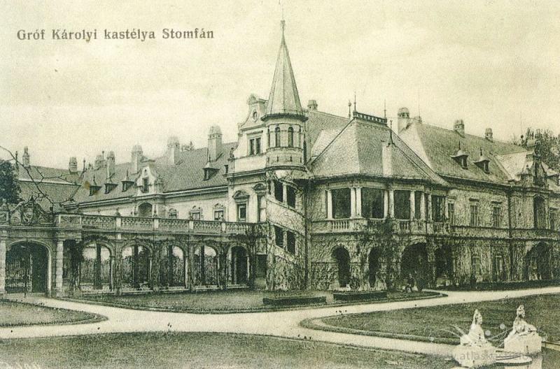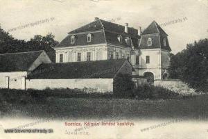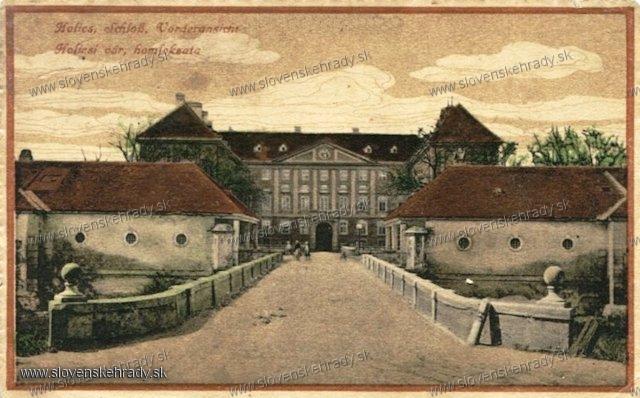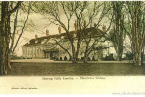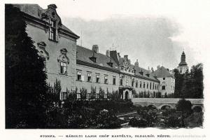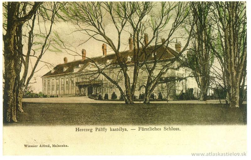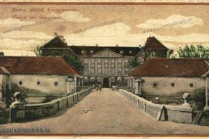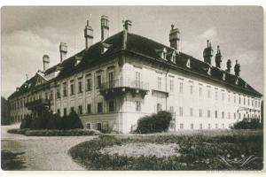 Zámek na staré pohlednici, podoba před necitlivou přístavbou horního patra.