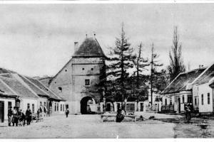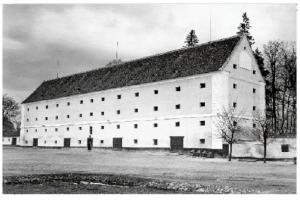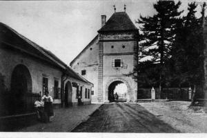 Pohled na severní křídlo z nádvoří na dobové fotografii.
