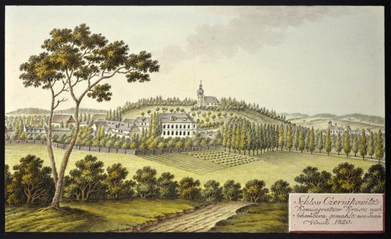 Černíkovice na vedutě I.A.Venuta z r. 1820