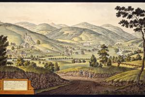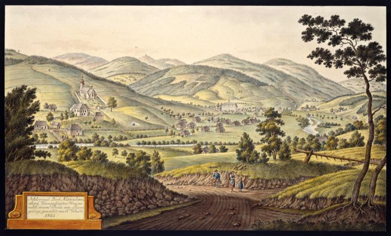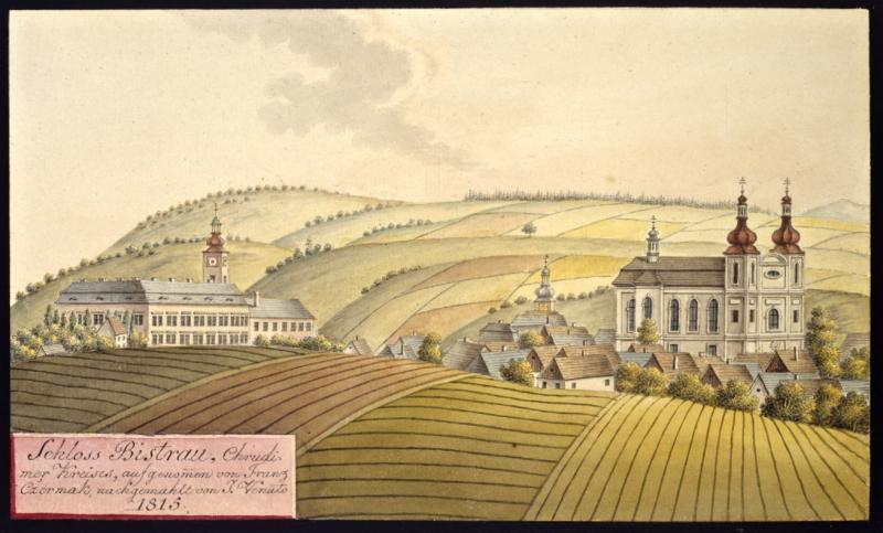 Pohled na Bystré na vedutě I.A.Venuta z r. 1815