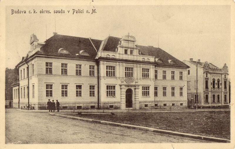 Pohled přes řeku na Landsbergerovu vilu a okolní zástavbu z místeckého břehu řeky. Přelom 19. a 20. století