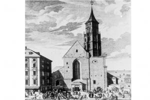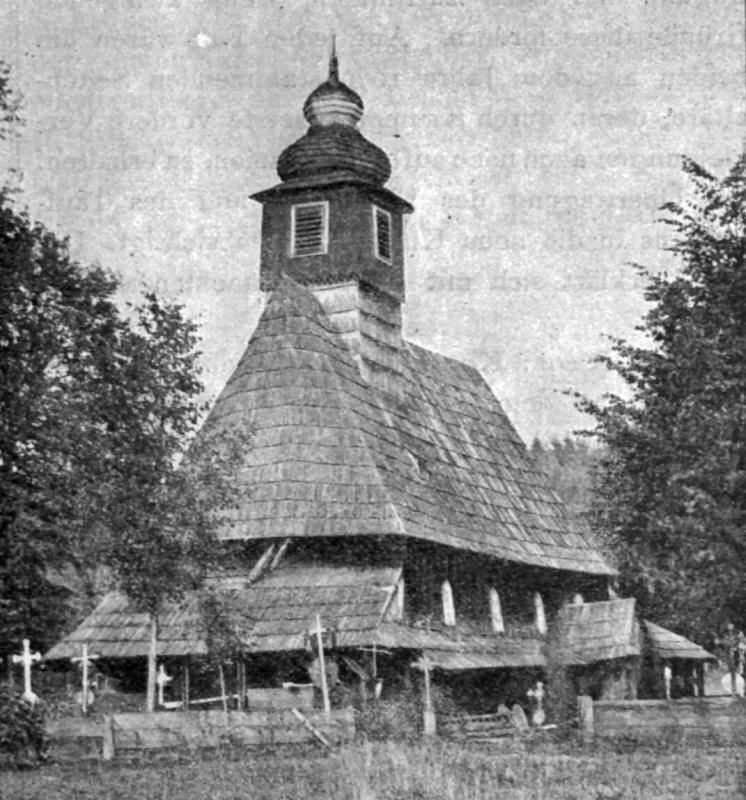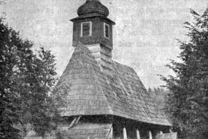 dřevěný předchůdce kostela sna již z 15. století krátce před svým zbořením