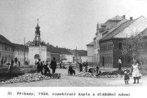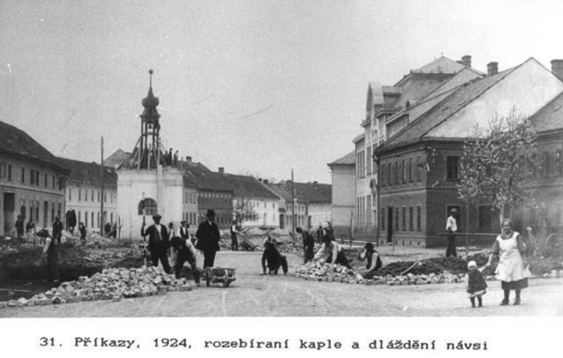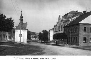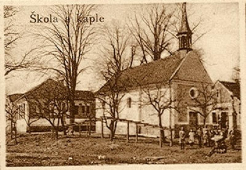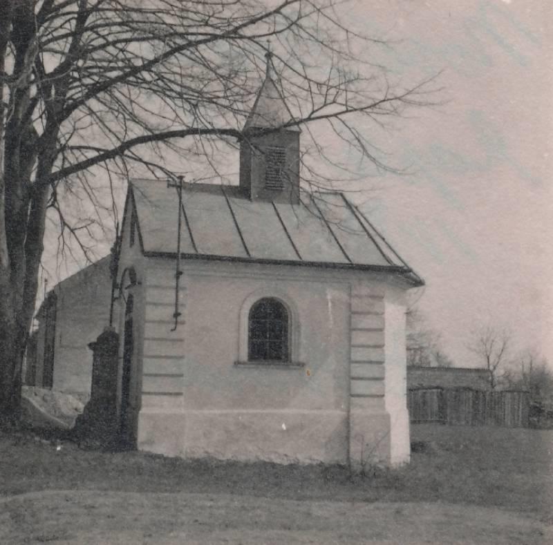 kaple na staré pohlednici z 1. poloviny 20. stol.