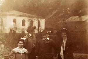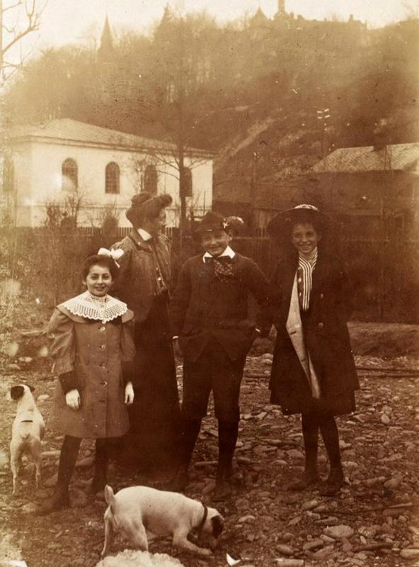 Děti Adolfa Landbergera Terezie, Alfréd a Anna se svou matkou Mariannou ve Frýdku. Před rokem 1903