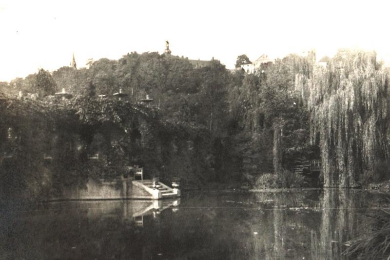 Okrasné jezírko v parku továrního a ředitelského areálu. Počátek 20. století.