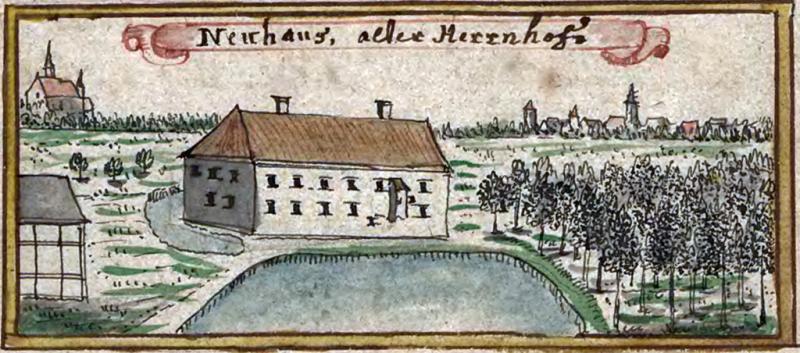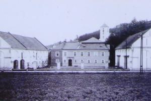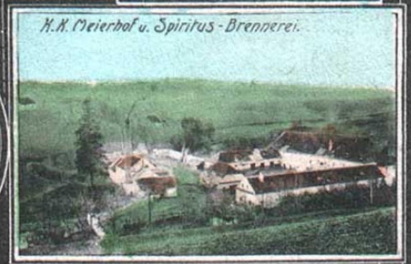 Panský dvůr a lihovar na dobové pohlednici z počátku 20. stol.