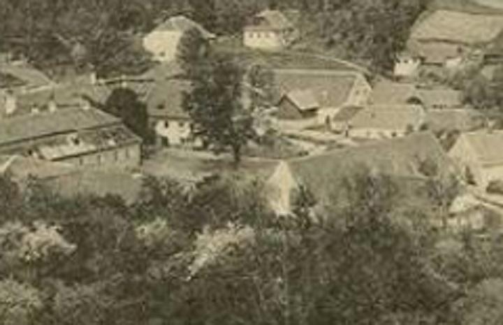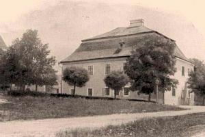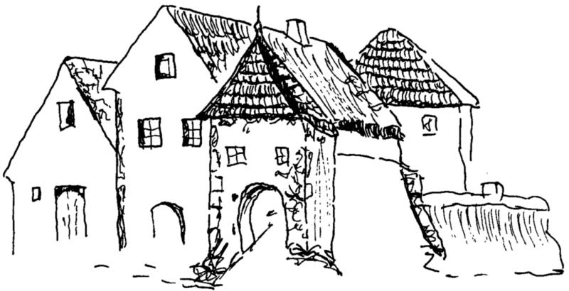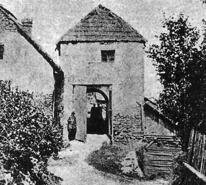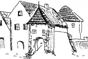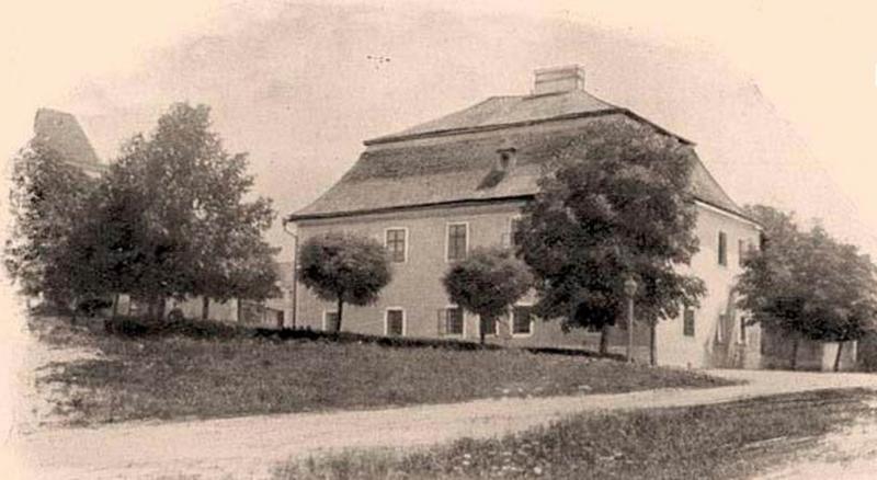 jádro tvrze od jihovýchodu na kresbě z obecní kroniky, kolem r. 1895