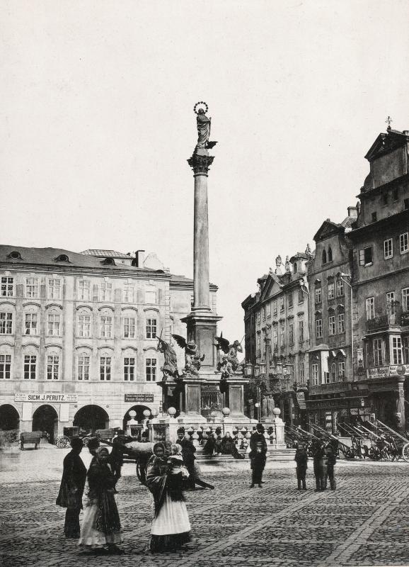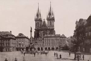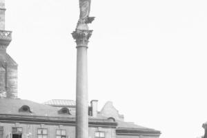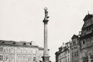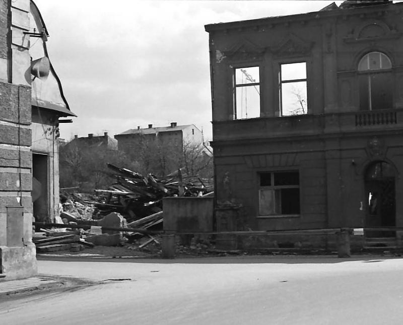 Pohled na původní místo sochy sv. Jana Nepomuckého během asanace Frýdku - před rokem 1978