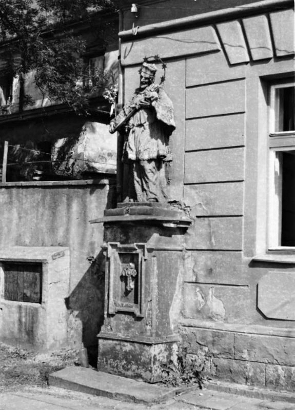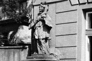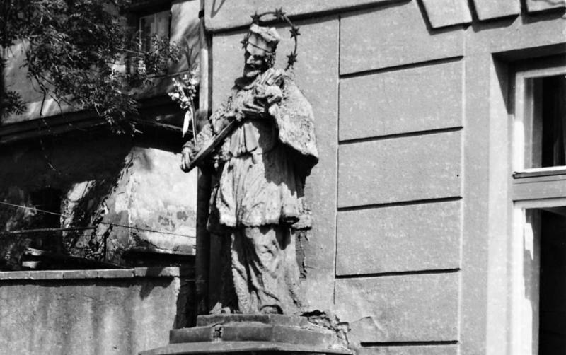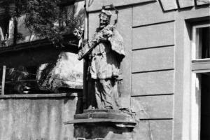 detail sochy sv. Jana Nepomuckého v jejím původním umístění na Hluboké ulici