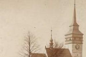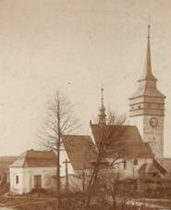 kostel na dobové pohlednici 1. polovina 20 stol.