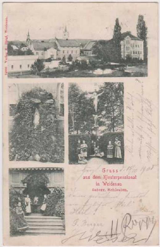 Dobová pohlednice - Pozdrav z klášterního penzionátu ve Vidnavě - rakouské Slezsko.