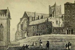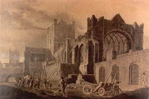 Kresba od J. S. Templetona (1824) ukazuje zbořený dlouhý chór s plochým závěrem.
